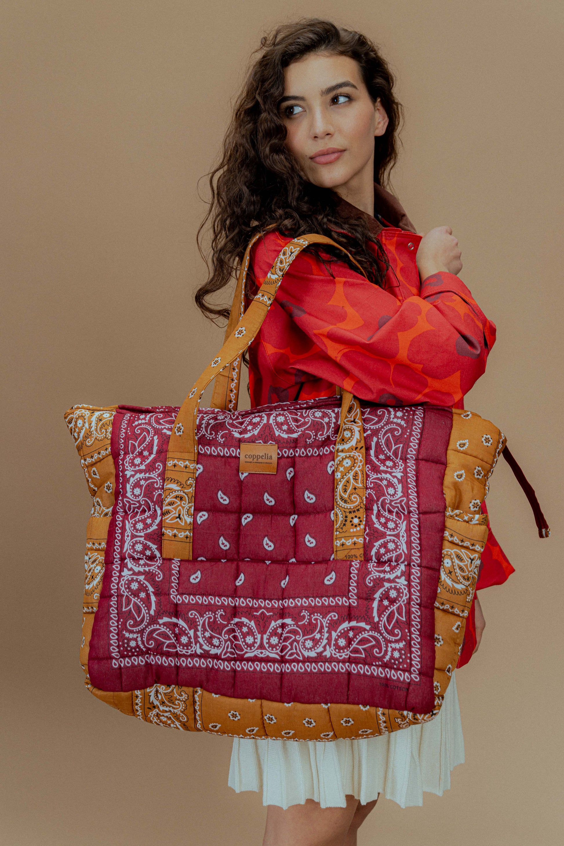 This hand quilted tote bag is all you need for a cool adding to your practical look. With 3 outside pockets and 5 inside pockets. Zip closure.
